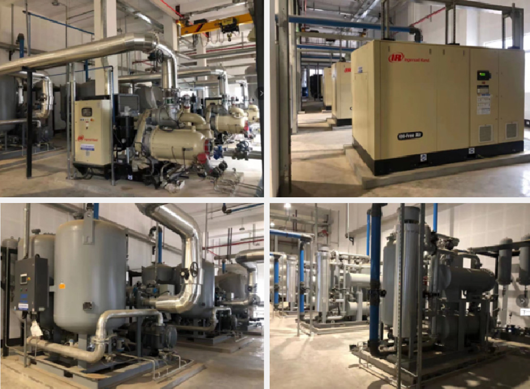 Procurement, installation, and commissioning of air compressors, cooling towers, fans, and water pumps.
